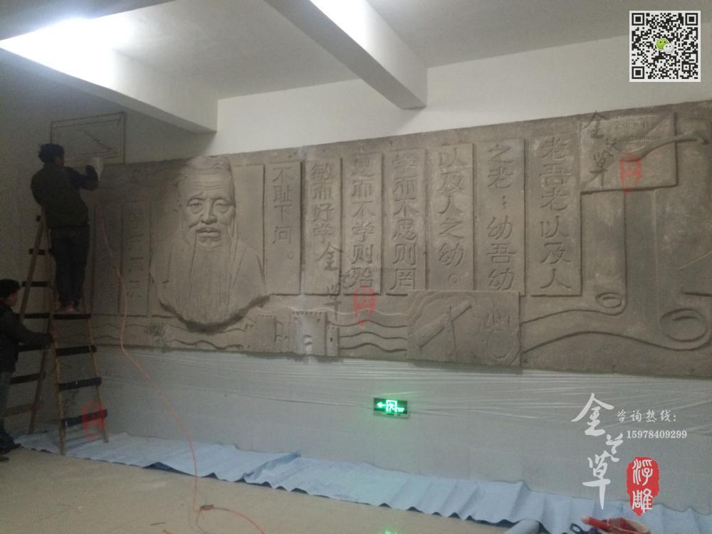 校园浮雕文化_孔子浮雕墙安装:将校园浮雕运至校方指定安装地点,采用直接安装与干挂安装的方式,根据墙体不同采取不同方式,注意墙体沉重能力及墙体电线的走向,将浮雕固定于浮雕文化墙指定墙面上;之后打磨边角,补充漏洞,做好接缝的打磨再处理,最大力度的恢复接缝的流畅度。